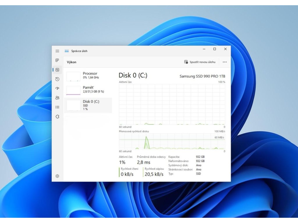 -Úložiště: 1 TB SSD (Samsung 990 PRO) typu M2